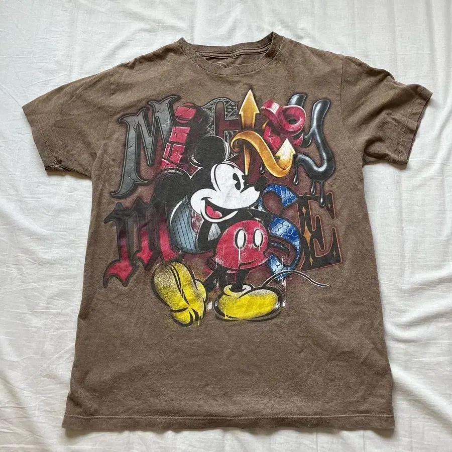 미키마우스 그래픽이 인상적인 브라운 T셔츠. - 디자인: 미키마우스 그래픽 프린트 - 색상: 브라운 - 스타일: 캐주얼 - 소재: 코튼 (추정) 방문해 주셔서 감사합니다. 안쪽 목 부분에 밖으로 통하지 않는 핀홀 구멍이 있었으나 전문점에서 수선했습니다. 기타, 오래된 상품이므로 이해해 주실 수 있는 분만 부탁드립니다.