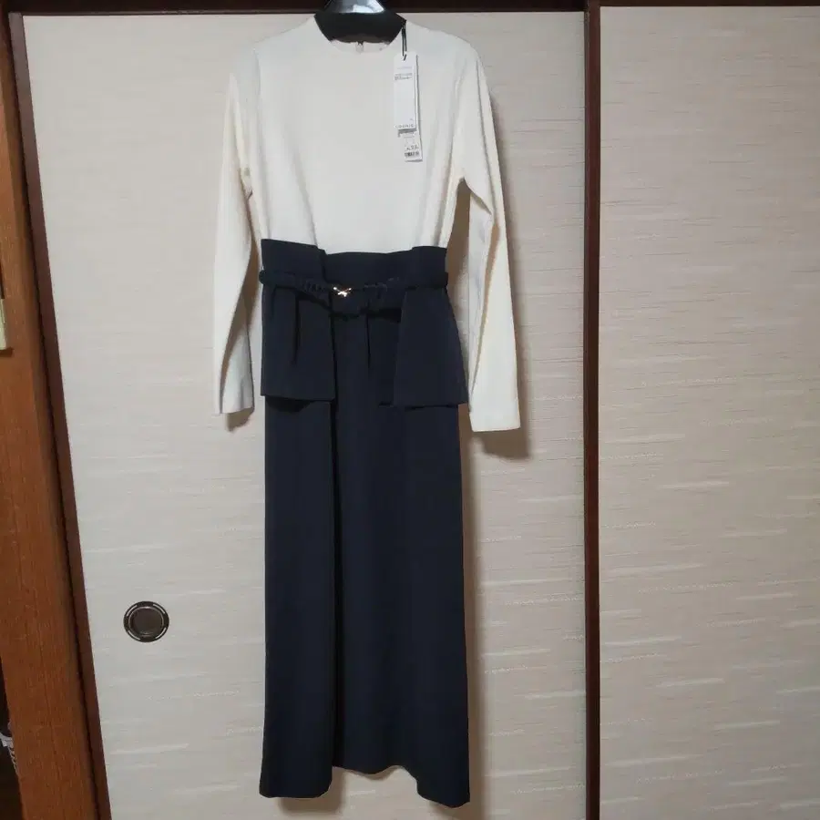 허리 벨트 포함 롱 원피스