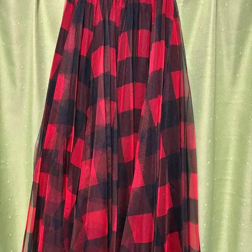 셀렉샵에서 구매 사이즈 → 프리 사이즈 스커트 길이 → 허리 밴딩부터 측정 - 약 84cm (밴딩 폭 - 3cm) 빨간색과 블랙 체크가 귀엽습니다. 안감 - 블랙이며 튤 소재이지만 탄탄합니다.
