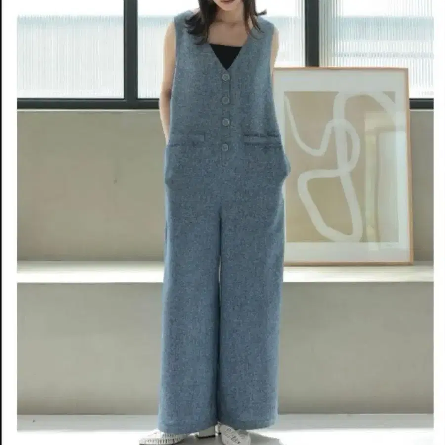 Re:EDIT 올인원 썸머 트위드 V넥 올인원 브랜드: Re:EDIT, 리디 상품명: 올인원 카테고리: 올인원 살로펫 ] 점프수트/올인원 [ 실측치수 ] MEDIUM: 가슴 너비 48, 어깨 너비 36, 총길이 134, 허리 94, 인심 62 청량감이 느껴지는 썸머 트위드풍의 질감이 세련된 인상을 완성하는 올인원입니다. 빅 싸개 버튼이 악센트가 되어 클래시컬한 매력을 더해줍니다. 깊은 V넥이 데콜테를 예쁘게 보여주며, 이너와의 레이어드도 돋보이는 아이템입니다. 프린지를 더한 페이크 포켓이 자연스럽게 허리 위치를 높게 보이게 하여 롱 레그 효과도 좋습니다. 약간 여유 있는 실루엣으로 자연스러운 분위기를 연출합니다. 릴랙시하면서도 모던한 분위기를 연출하는 썸머 트위드 올인원입니다.