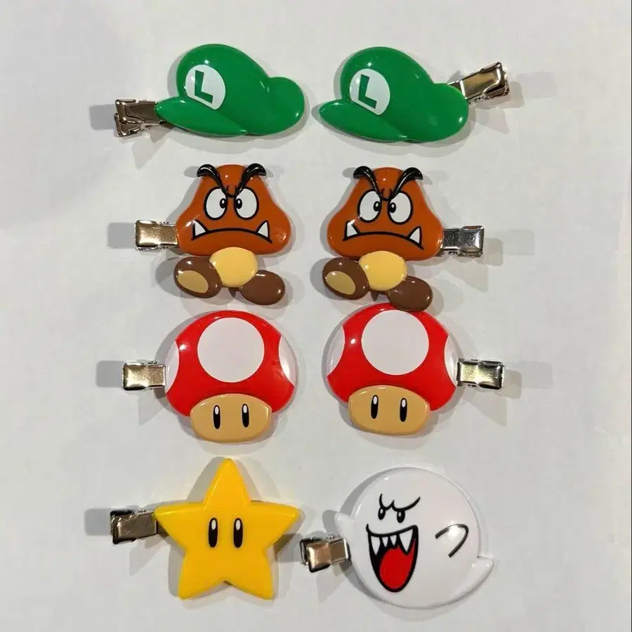슈퍼 마리오 앞머리 클립 헤어 클립 헤어 액세서리 루이지 모자 2개 밤(쿠파 주니어) 2개 슈퍼 버섯 2개 테레사 1개 슈퍼스타 1개 총 8개 세트입니다. 프라이즈 상품이라는 것을 이해하신 분만 구매 부탁드립니다. 즉시 구매 ⭕️