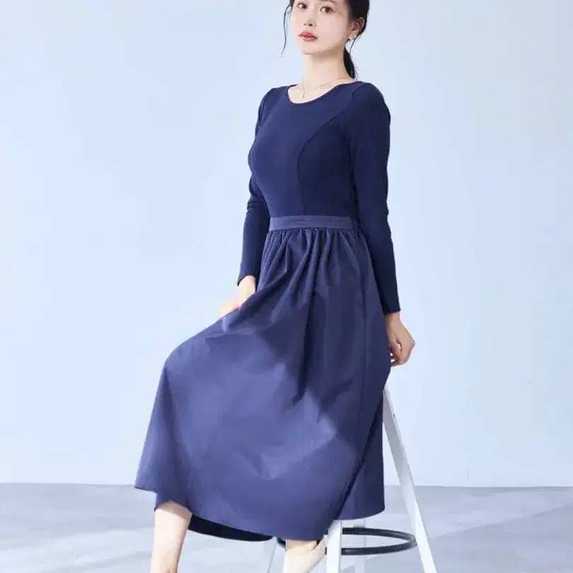 [ 시착만 한 상품 ] overE 컷 도킹 원피스 네이비 90