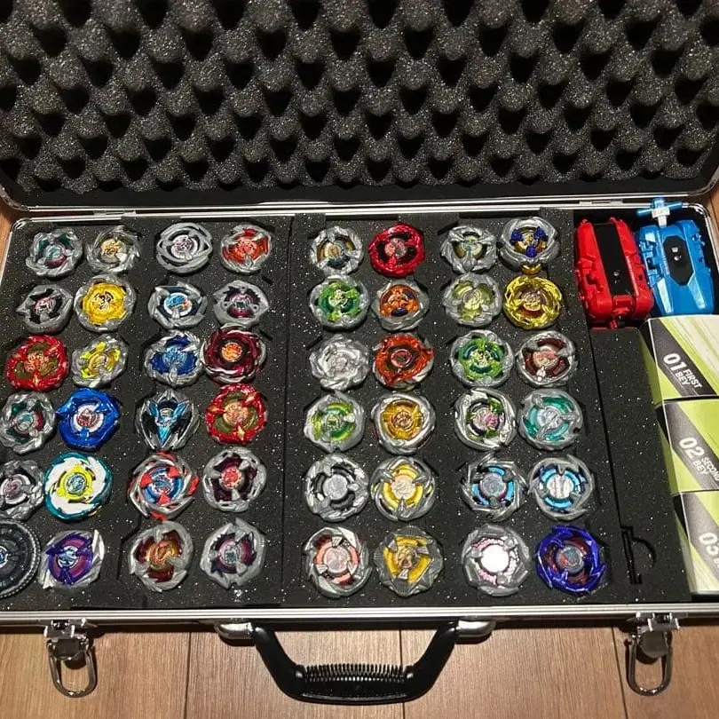 베이블레이드 X 본체가 최대 48개 수납 가능한 케이스를 판매합니다. 스펀지 부분은 간단하게 분리 가능하도록 되어 있어, 취향에 맞게 커스텀도 가능합니다. 사진 1번째의 베이블레이드 본체, 3on3 덱 케이스, 런처 2개는 부속되지 않으니 주의해 주십시오.