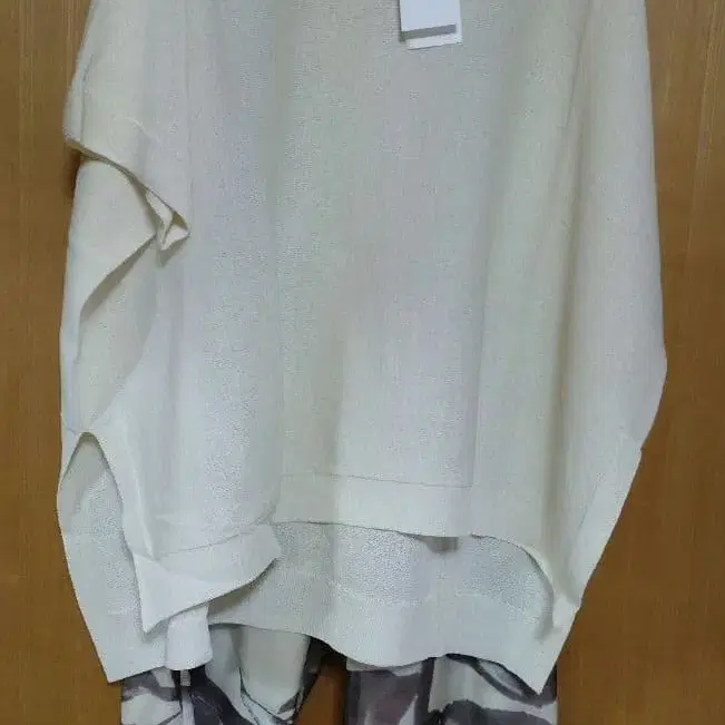 정가 16500엔 아이보리 가슴 너비 약 77cm 기장 약 62cm 전면부는 약 10cm 정도 짧은 디자인입니다. 첫 번째 사진의 팬츠는 별도 판매 중입니다.