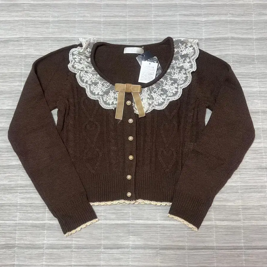[ 택 포함 새상품 ] 브라운 레이스 옷깃 크롭 가디건