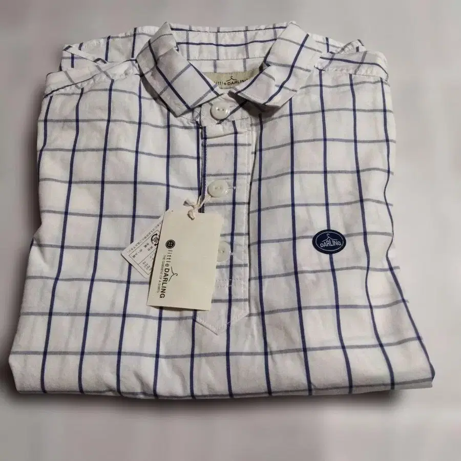 화이트와 네이비 체크 무늬의 긴팔 셔츠, 택 포함 새상품입니다.