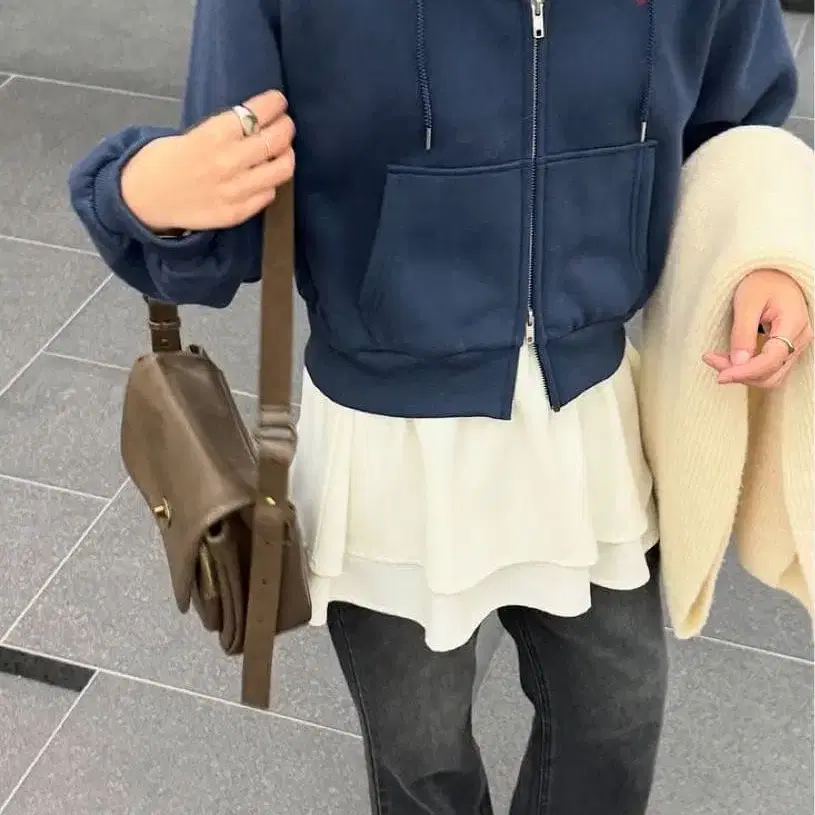 리젝시 니트 원피스 가디건 레이어드 스타일 그레이