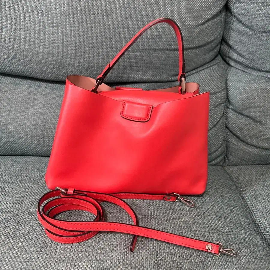 심플하고 스타일리시한 빨간색 숄더백, 조정 가능한 스트랩 포함.