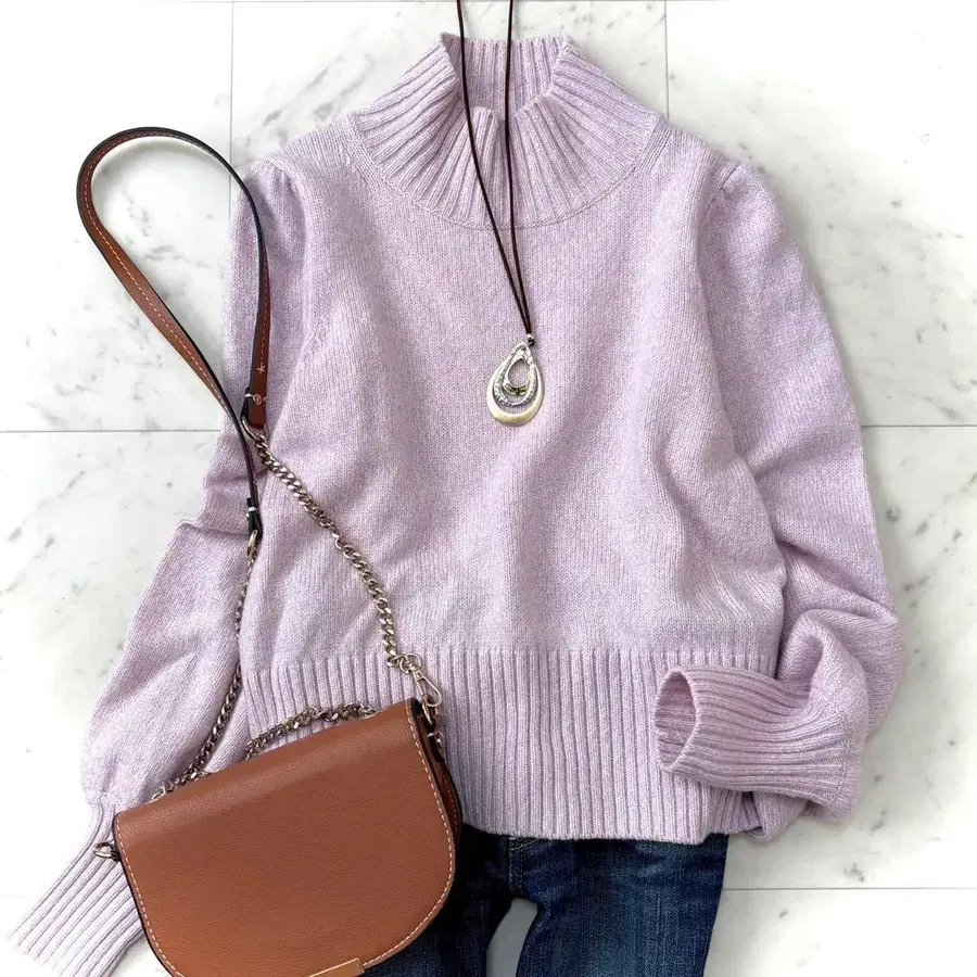 입었을 때 돋보이는 부드럽고 페미닌한 라벤더 컬러가 멋진 니트입니다.