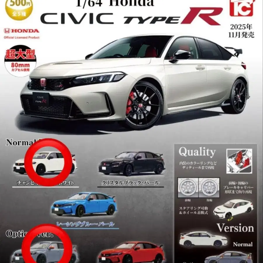 토이즈캐빈 시빅 가챠 시빅 TYPE R 챔피언쉽 화이트 소닉 그레이 펄 2대 세트 내부 가방 미개봉, 미니북 개수만큼 부속. 캡슐은 부속되지 않습니다.