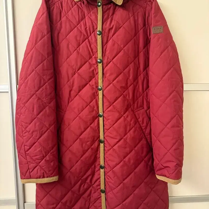 AIGLE 빨간색 퀼팅 자켓 후드 부착