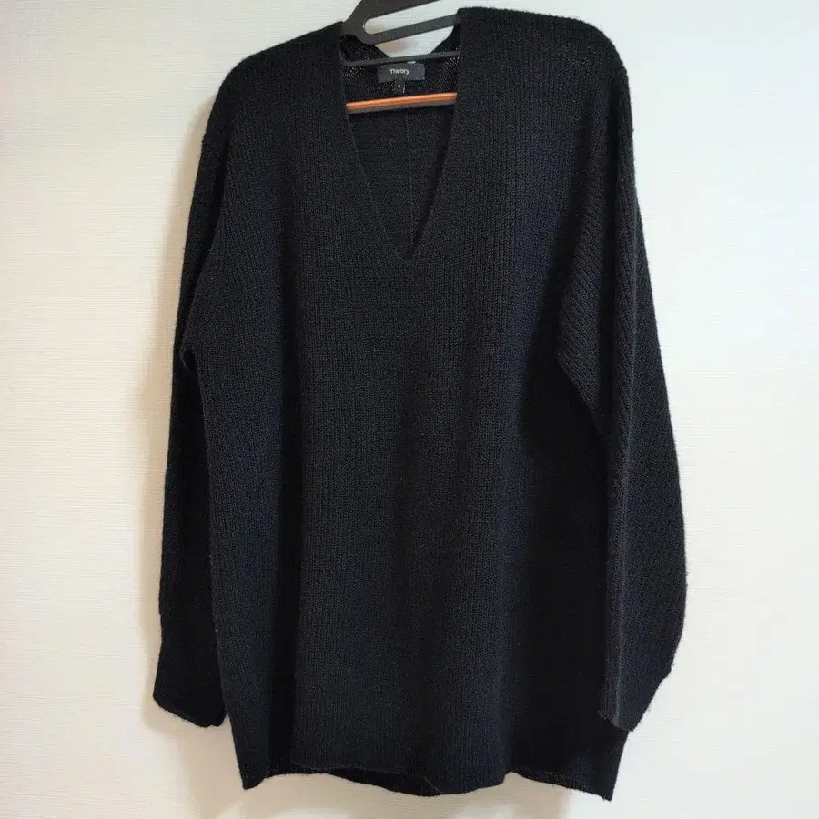 심플한 블랙 V넥 스웨터, 사이즈 S.