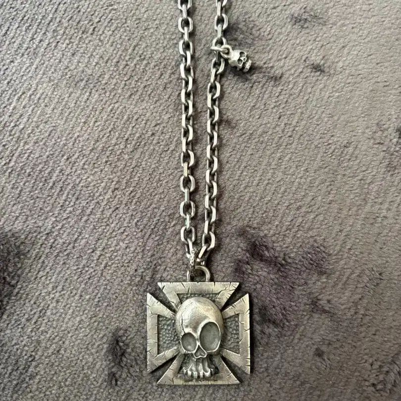 스컬과 십자가의 실버 목걸이