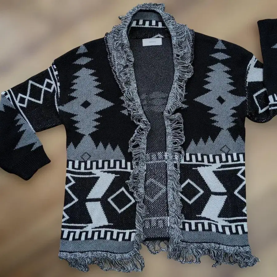 에스닉 프린지 니트 가디건 네이티브 무늬