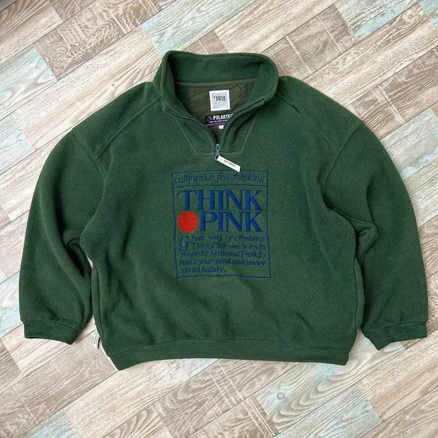 THINK PINK 플리스 하프 지퍼 풀오버 그린 크롭 기장