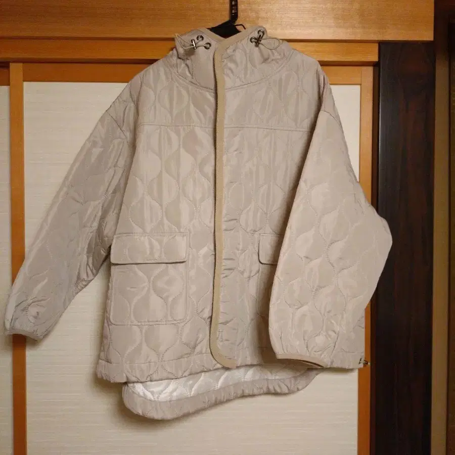 베이지 퀼팅 후드 부착 자켓