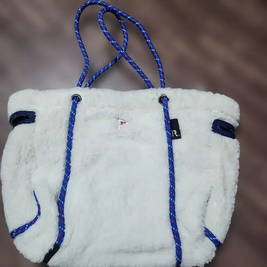 보아 토트백으로, 파란색 로프 스트랩이 특징입니다. - 색상: 화이트 - 소재: 플리스 - 스트랩 색상: 파랑 - 로고: RT - 디자인: 토트백 자택 보관이므로 신경 쓰이는 분은 구매를 자제해주세요!!!