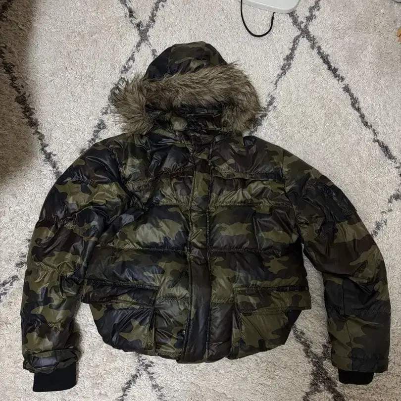 카모 패턴 퍼 후드 다운 자켓 n2b y2k 크롭 카모 무늬