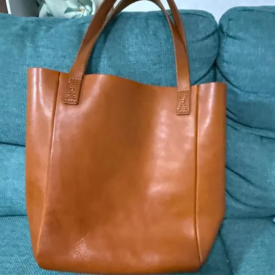 심플하고 세련된 디자인의 브라운 가죽 토트백.
