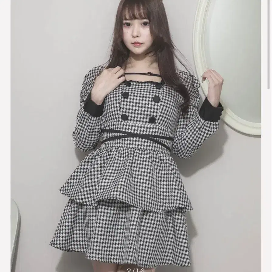 샤기 볼레로 미니 체크 원피스