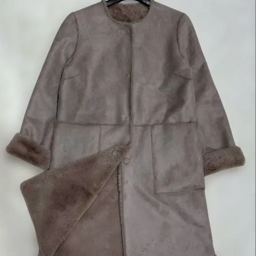 베이지 노카라 무스탕 코트 오버 사이즈