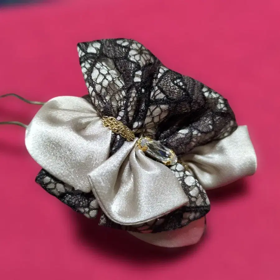 컴플렉스 비즈 헤어콤 새틴 리본 크리스탈