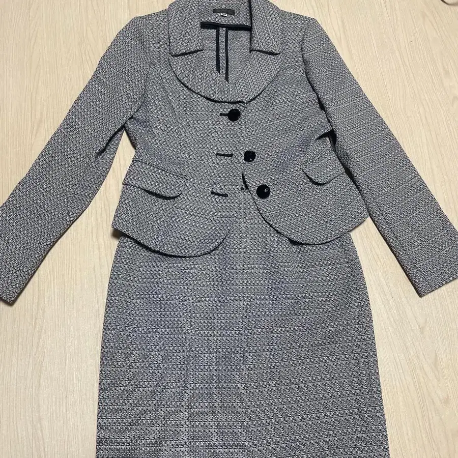 라이트 그레이 테일러드 자켓과 스커트 세트