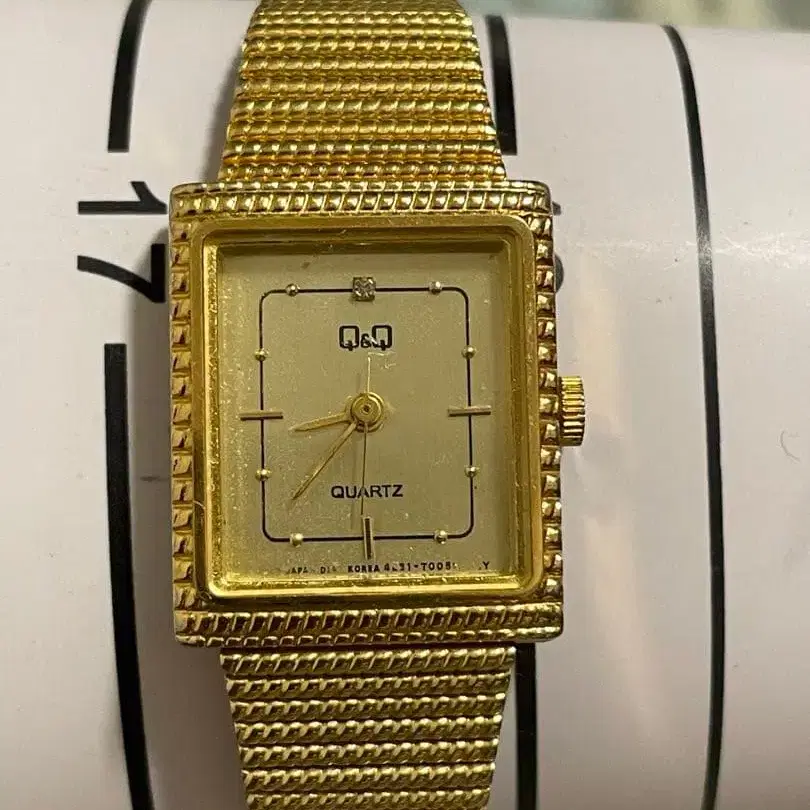 [가동품] Q&Q 골드 스퀘어형 쿼츠 손목시계