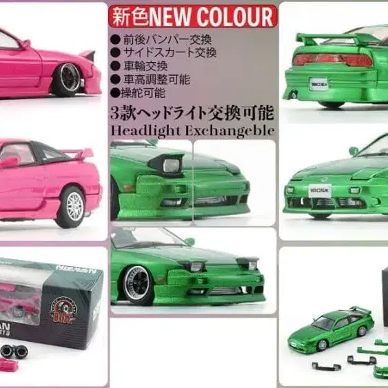 [ 미개봉 ] 1/64 닛산 180SX 2종 세트 1/64 180SX 메탈릭 그린 메탈릭 핑크 정품↔커스텀으로 변경 가능합니다. #36 미니카 판매 중 #180SX #240SX #NISSAN #닛산 #드리프트 #드리프트 자동차 #미니카 커스텀 #실에이티 #실비아 #SILVIA