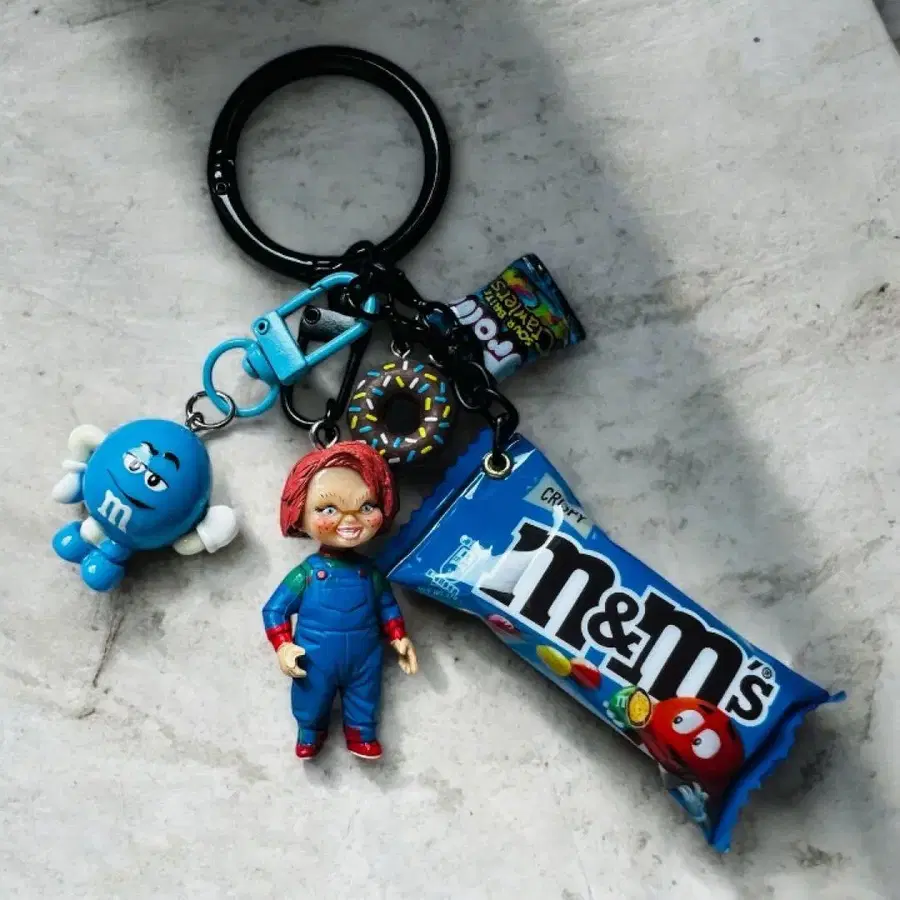 2개 묶음 구매 시 200엔 OFF 블루칼라가 귀여운 키링입니다 ✨ 처키와 M&M's풍 모티브, 도넛 등 위트 넘치는 디자인으로 완성되었습니다! 주렁주렁 달린 느낌이 귀여워 미니어처, 외국풍 디자인을 좋아하시는 분들께 추천합니다 ◎ ※ 핸드메이드 제품이므로, 미세한 스크래치나 개체 차이가 있을 수 있습니다. 그만큼, 개성 있는 귀여움을 즐기실 수 있습니다 ♡ 즉시 구매 OK