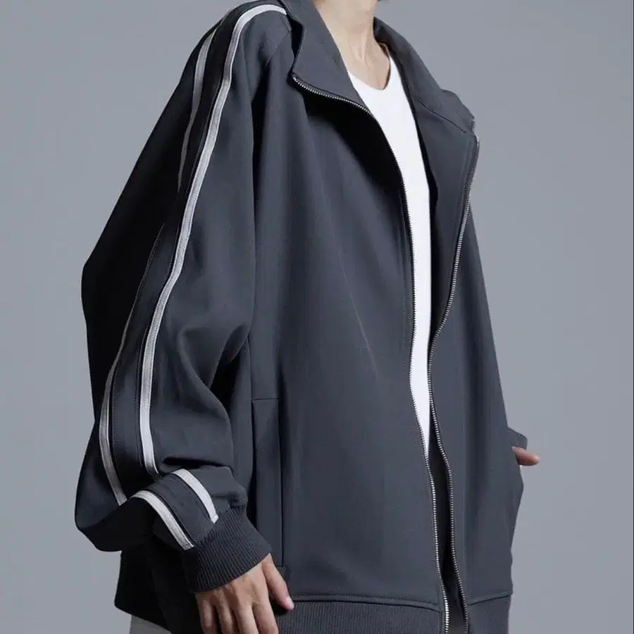 드레이프 모드 하이넥 트랙 자켓 그레이쉬 블루 M