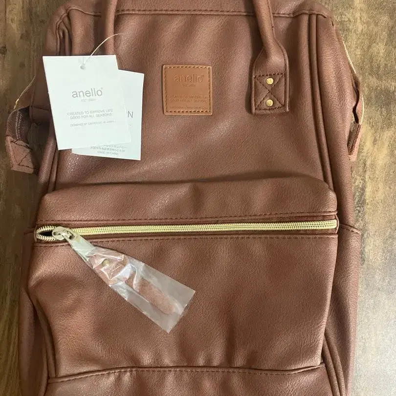 자동 번역되었어요. 원문보기아네로 합성 피혁 소재의 브라운 백팩, 골드 지퍼 포함