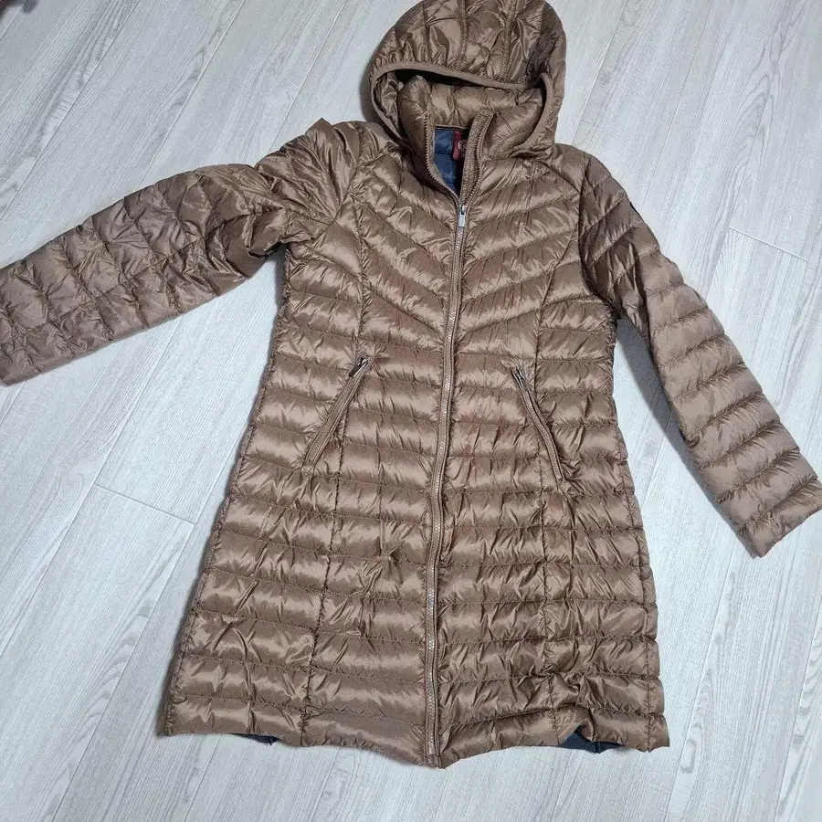 새상품급 허니 다운 자켓 구스 다운 후드 수납 더블 지퍼 브라운