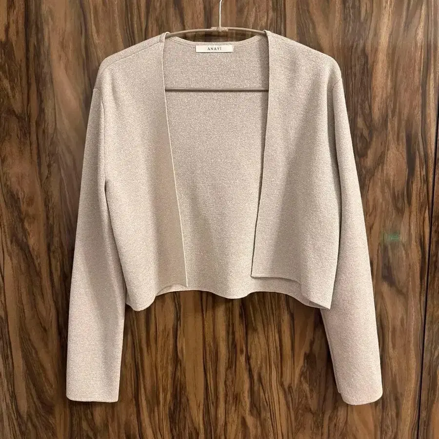구매 후 한 번도 착용하지 않고 보관했습니다. 포멀한 자리나 평소 원피스 코디 등에도 잘 어울리는 고급스러운 라메 가디건입니다.