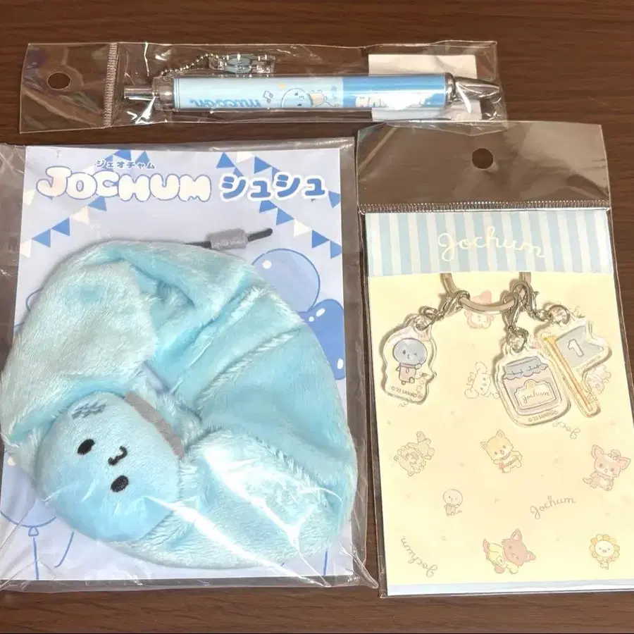 JOCHUM 마이크 굿즈 3점입니다. 볼펜 3단 아크릴 키링 스크런치 모두 미개봉이지만, 볼펜 노크 부분이 노후화 때문인지 군데군데 녹슨 것처럼 되어 있습니다. (잘 보이지 않지만, 사진 2장에 담아두었습니다.)