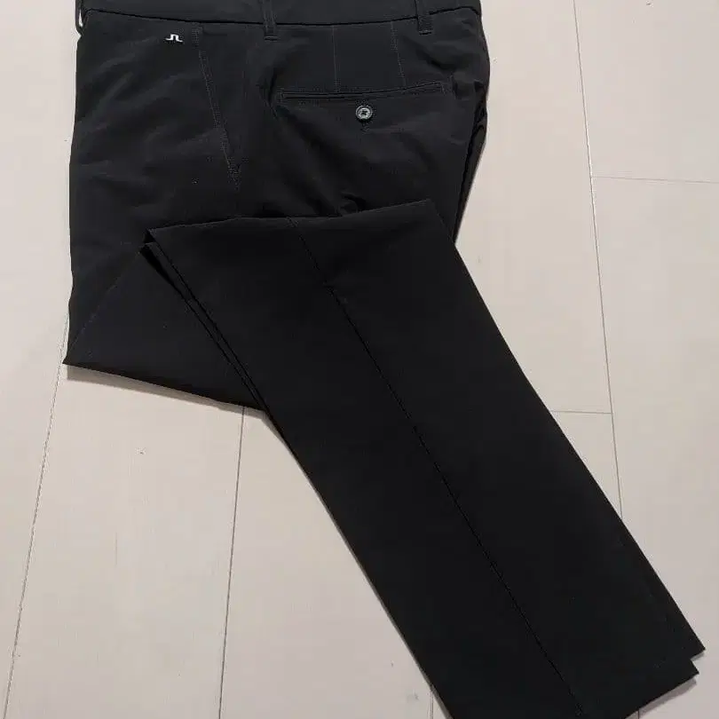 J.LINDEBERG의 메탈 로고가 장식된 블랙 슬랙스.