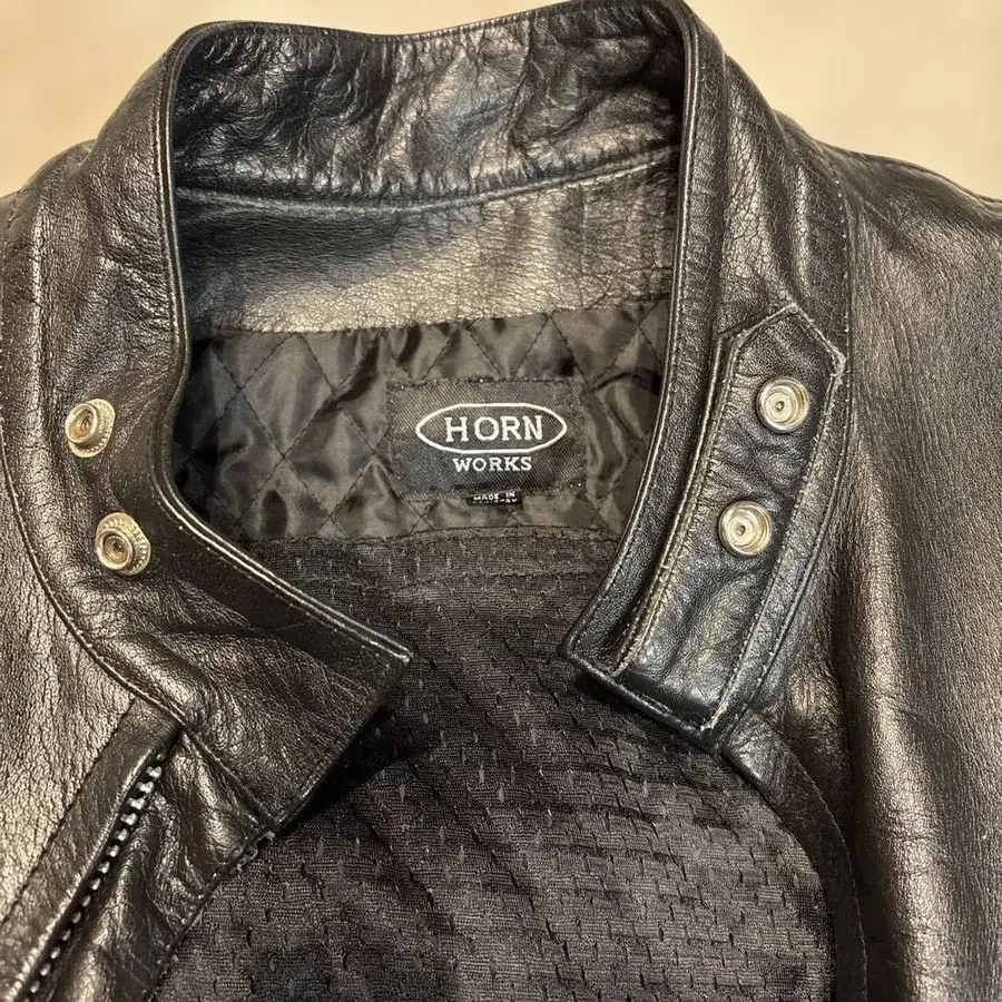 HORN WORKS 블랙 가죽 라이더 자켓