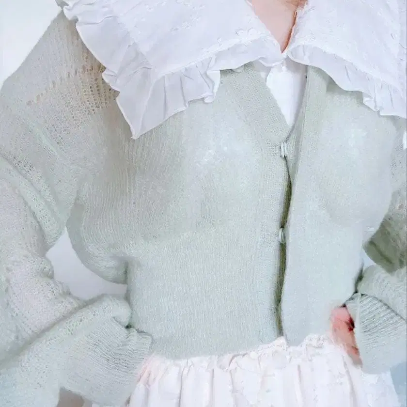 허리에 잘 맞춰주는 형태이므로, 가디건 특유의 몸통이 길어 보이거나 헐렁해지지 않고 깔끔하게 슬림해 보이는 멋진 형태입니다.