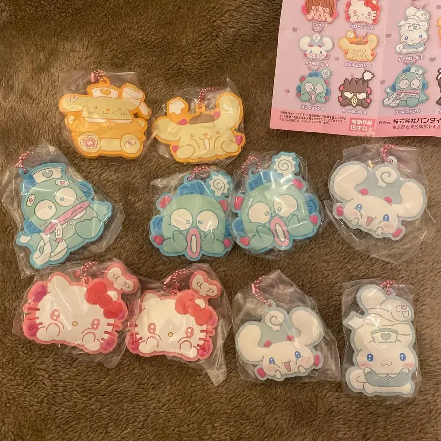 산리오 캐릭터 러버 키링 세트입니다. 일괄 구매하시는 분 우선합니다. 즉시 구매 가능합니다. - 캐릭터: 산리오 캐릭터 - 수량: 총 12종 중 일부 - 브랜드: 반다이남코 방문해 주셔서 감사합니다. 타이틀 - 산리오 피노코 x 산리오 캐릭터 스페셜 러버 마스코트