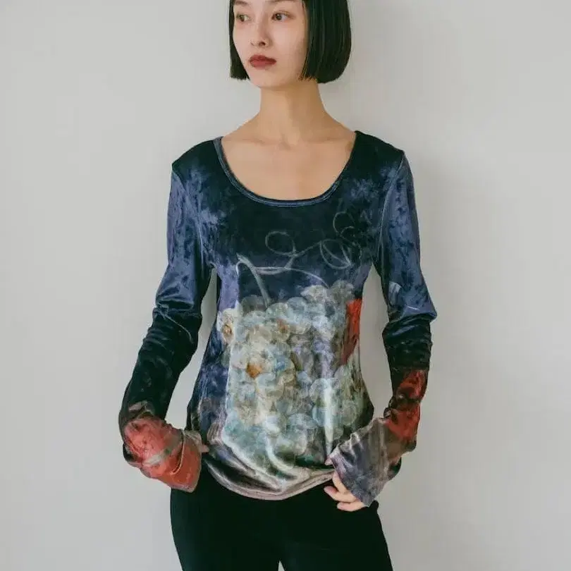 • emmi atelier 블루 벨로아 긴팔 상의