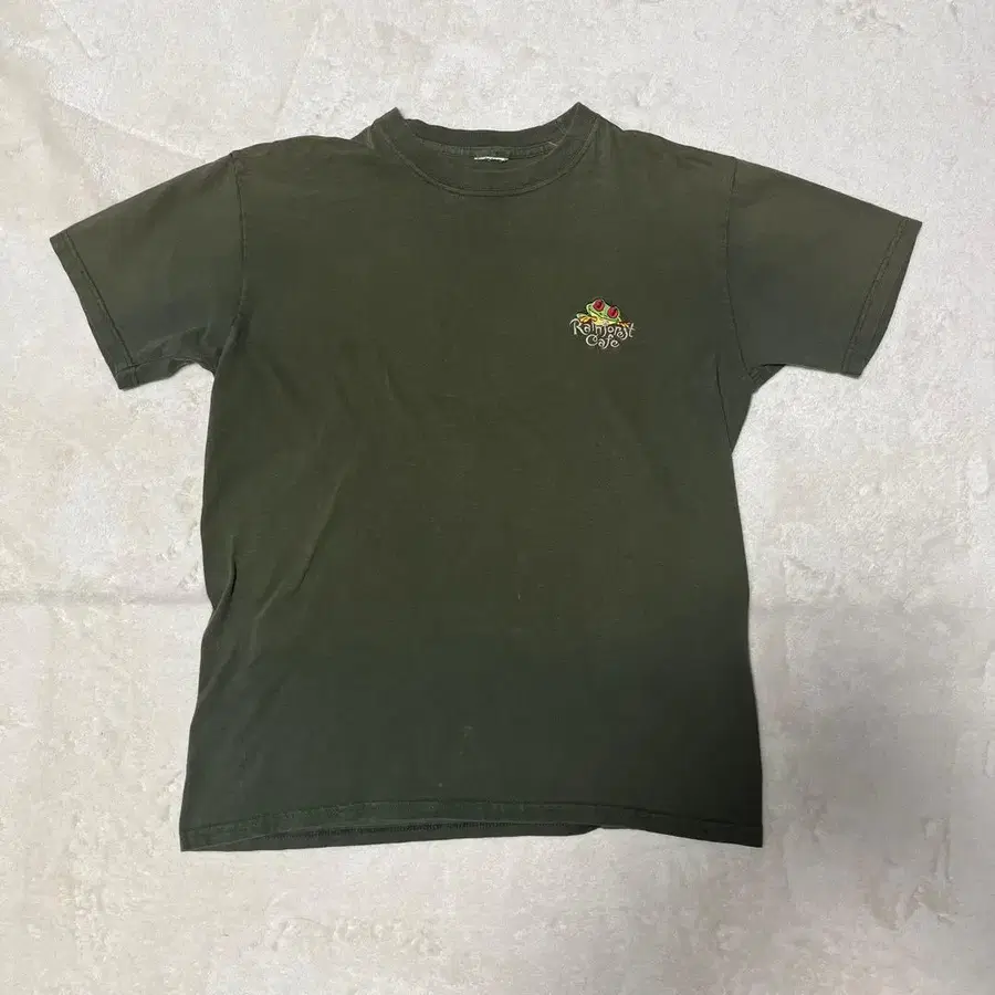 올리브 그린 레인포레스트 카페 자수 T셔츠, 코튼 혼방 소재로 쾌적한 착용감. - 색상: 올리브 그린 - 디자인: 레인포레스트 카페 자수 로고 - 소매 스타일: 반팔 - 소재: 코튼 혼방 - 백 디자인: 무지 어깨 너비 46 가슴 너비 49 기장 62.5 소매 폭 18 방문해 주셔서 감사합니다. 사이즈 - M