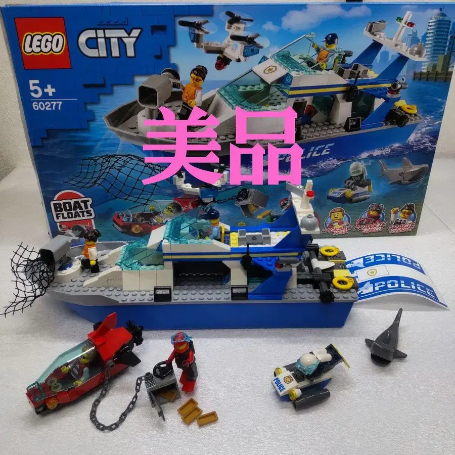경찰 테마의 보트 세트, 미니 피규어 5개 포함.