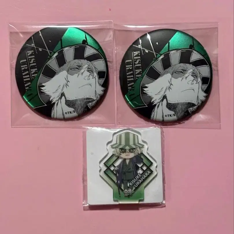 BLEACH 천년혈전편 슬림 키링 & 메탈릭 캔뱃지 우라하라 키스케 세트