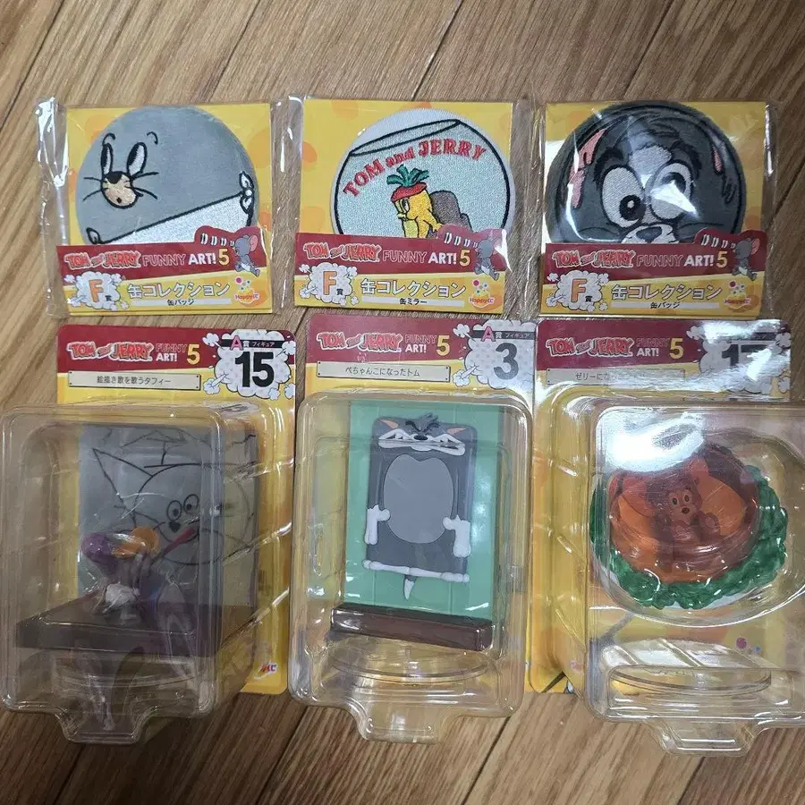 톰과 제리 Happy 복권 피규어 A상 15번 그림 그리기 노래를 부르는 태피 A상 3번 찌그러진 톰 A상 17번 젤리가 된 제리 캔 컬렉션 F상 캔뱃지 x 2 캔 거울 6세트입니다. A상 3번만 개봉하여 에어캡으로 포장해 드립니다.