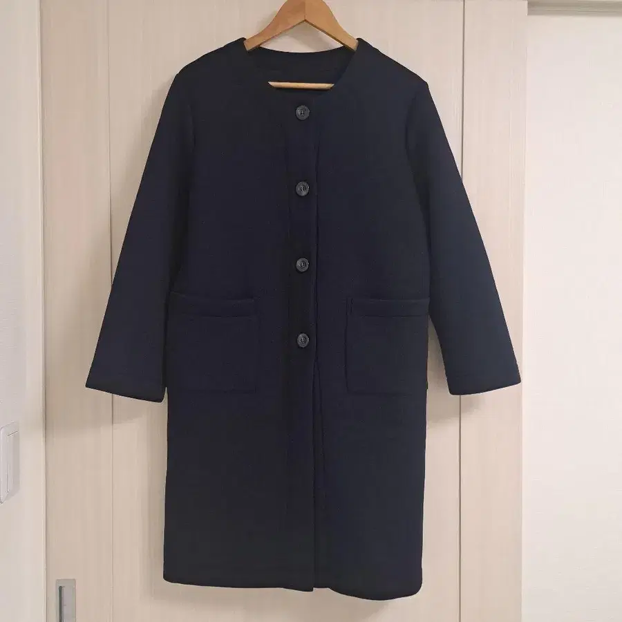 자유구 울 코트 38 M 사이즈 노카라 마테코 네이비