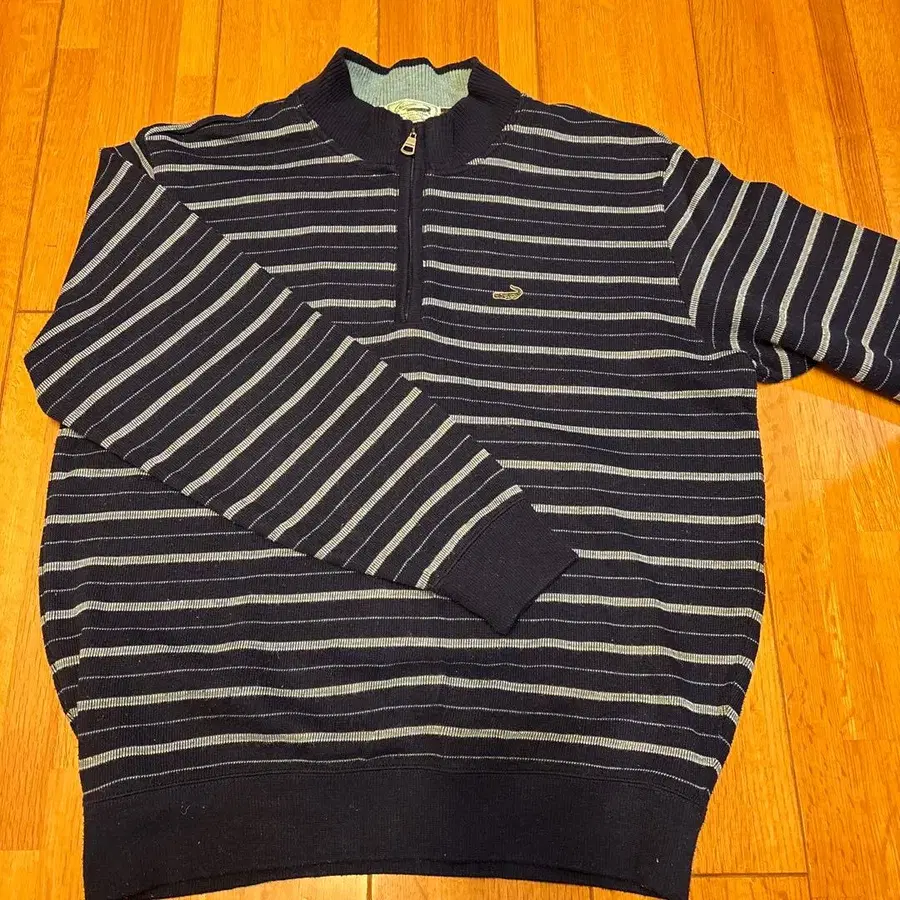 네이비 스트라이프 디자인, 지퍼가 달린 크로커다일 스웨터. - 브랜드: 크로커다일 - 색상: 네이비/스트라이프 - 디자인: 지퍼 포함 - 소재: 코튼/폴리에스테르 - 사이즈: M 방문해 주셔서 감사합니다. 사이즈 - L