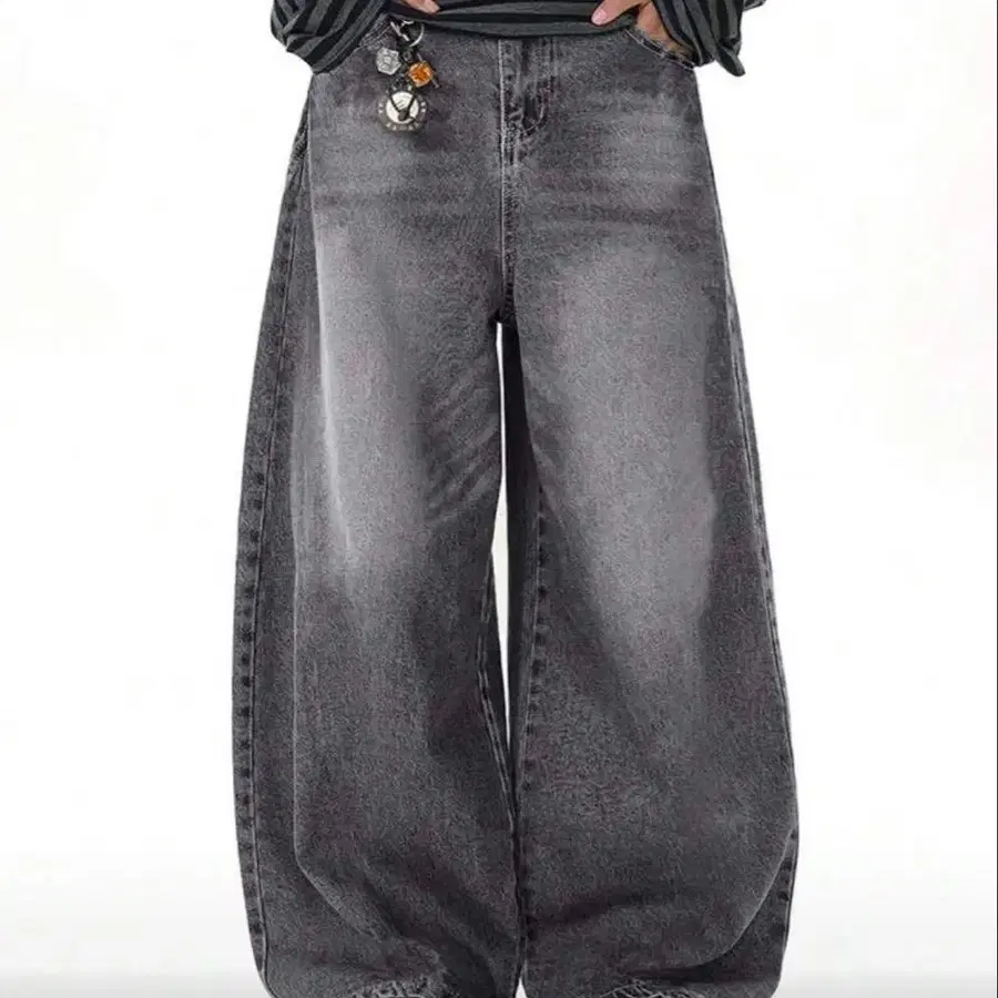 MENES 다크 그레이 와이드 레그 데님 팬츠