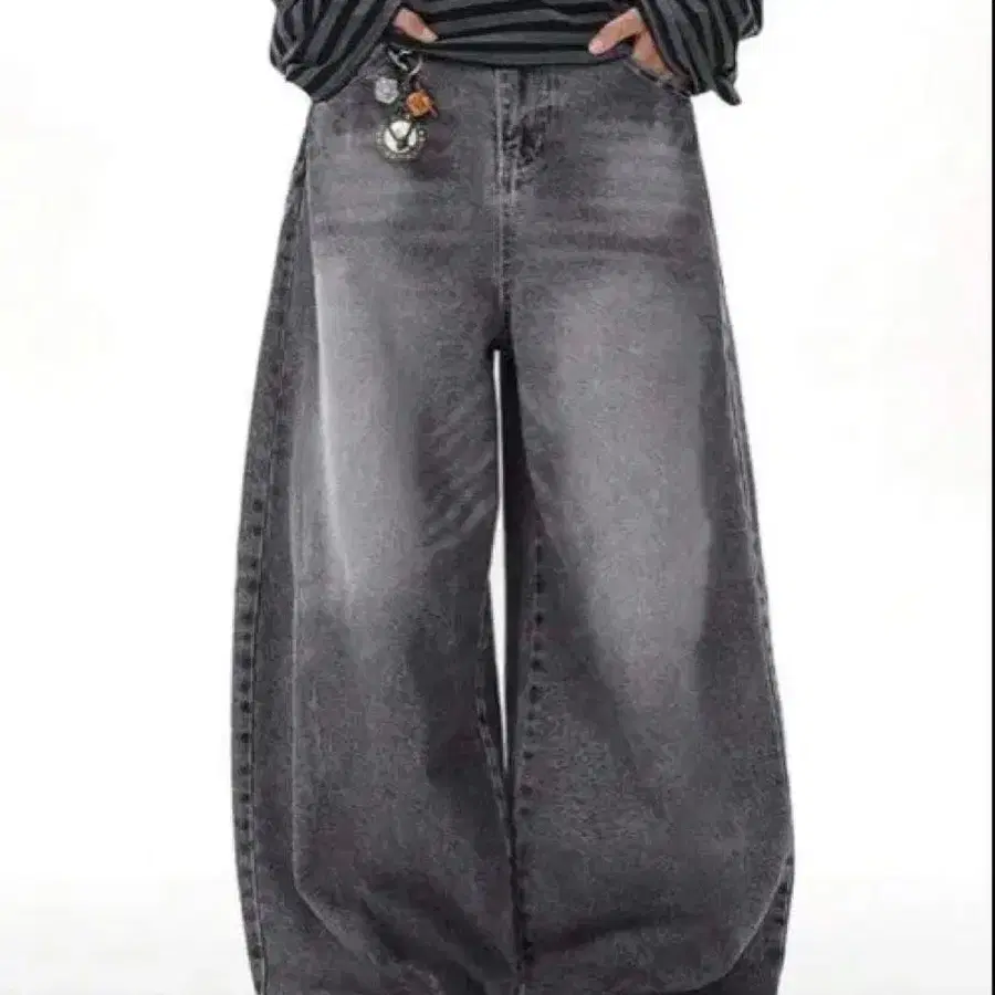 디자인 워싱 와이드 데님 팬츠