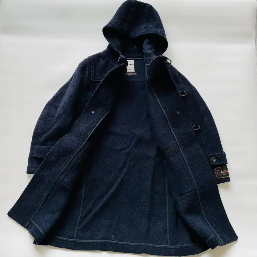 프론트는 토글 여밈 사양, 후드 부착으로 방한성이 높으며 실용성과 디자인성을 겸비했습니다. 소재는 울을 주체로 한 원단을 사용했으며, 탄탄한 두께감과 따뜻한 착용감이 특징입니다.