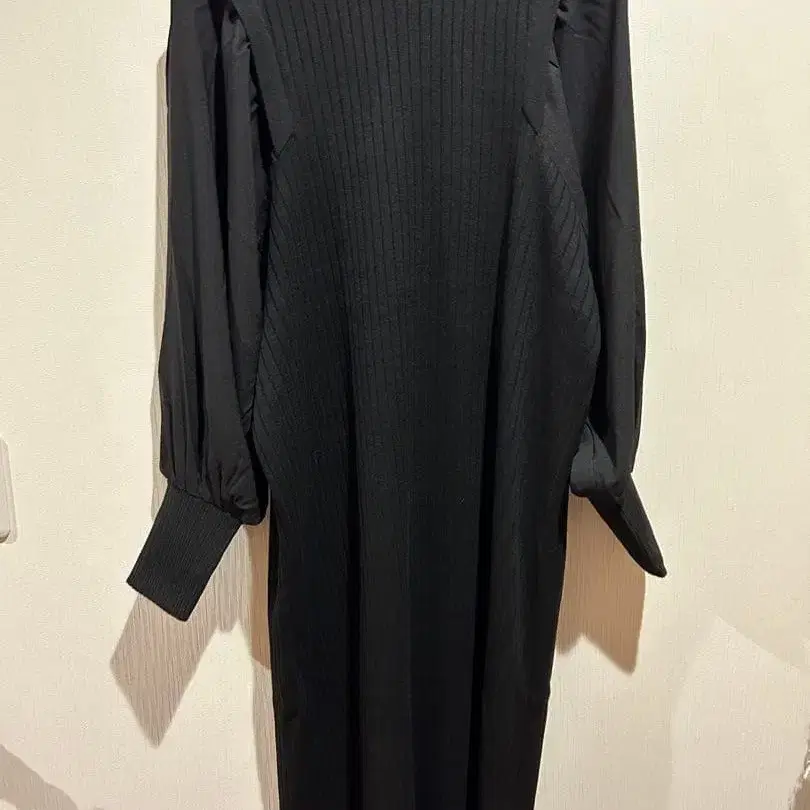 미사용 새상품 YAMADAYA 메독 퍼프 슬리브 리브 니트 원피스 블랙